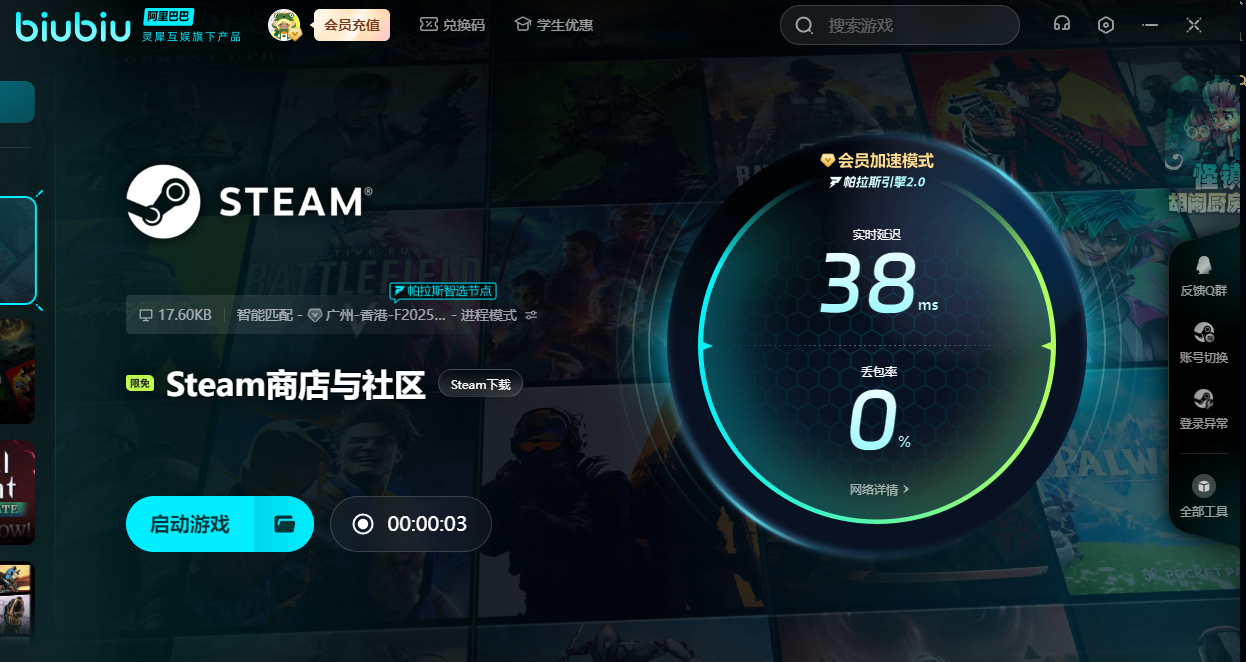 比如新用户只要通过注册就能领取到的3小时体验时间,在这段时间里相信足够朋友们感受到它的真实和好用。如果觉得还没有体验爽,那么在加速器页面中输入【biubiu不卡顿】这个兑换码也能额外带来3天的加速时长给用户们进行体验。除此之外,类似于首充优惠和大学生优惠等福利都能很好的为大家带来价格上的优惠。对于龙战士4这种需要在steam等平台上游玩的作品,也能用biubiu对steam等进行加速。