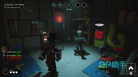 在游戏里,七位玩家参与其中,系统会随机指定一人化身为恐怖怪物,其余几位则成为机智的幸存者。幸存者们需齐心协力解开一道道精妙的谜题,收集散落的玩具部件,将其投入玩具合成装置,打造出巨型玩具并搬运至列车上,以此开启逃离之路。而怪物的使命则是全力出击,将所有幸存者击倒即可获胜。