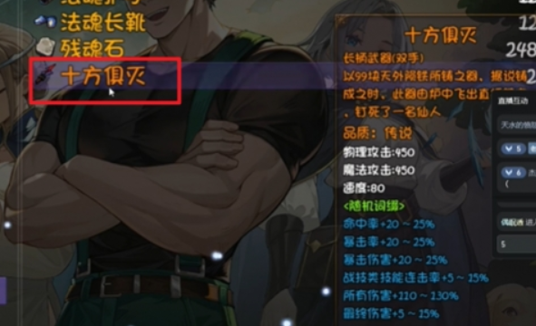 游戏里最推荐关于使用的武器就是十方俱灭,这是非常适合新手在前期开荒时选择的一个,武器各方面和角色的契合度非常高,加上关羽本身就是一个物理系的角色适合新手在前期开荒的时候使用,比较喜欢输出的角色的就可以选择关羽,前期最推荐使用的核心技能是鬼龙闪,角色首先会释放自己最经典的青龙偃月斩技能,释放完之后就会触发鬼龙闪,能在原有的招式上叠加大量的伤害。