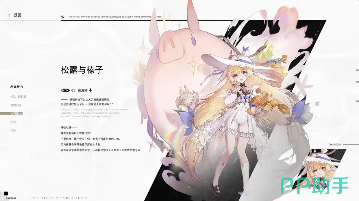 松露作为团队的辅助角色,以治疗能力与团队增益著称。这头巨大的野兽有着温和的个性,不会伤害玩家,反而为团队成员提供食物与恢复效果。松露的技能能够在战斗中为队友提供持续治疗,同时提升团队的生存能力。她的存在让玩家在高难度战斗中能够更加从容,尤其是在面对持久战时,松露的治疗支持是不可或缺的关键。
