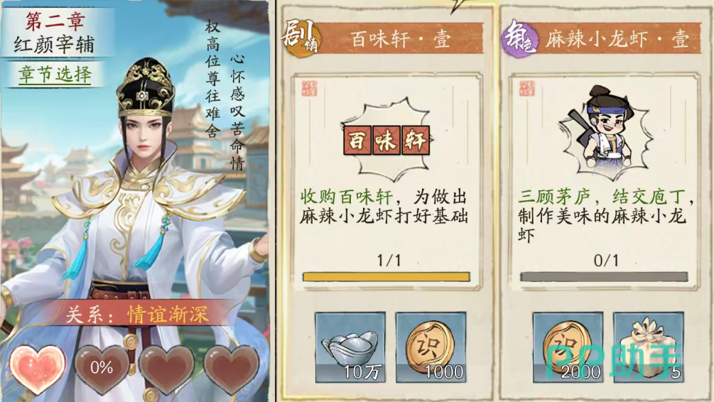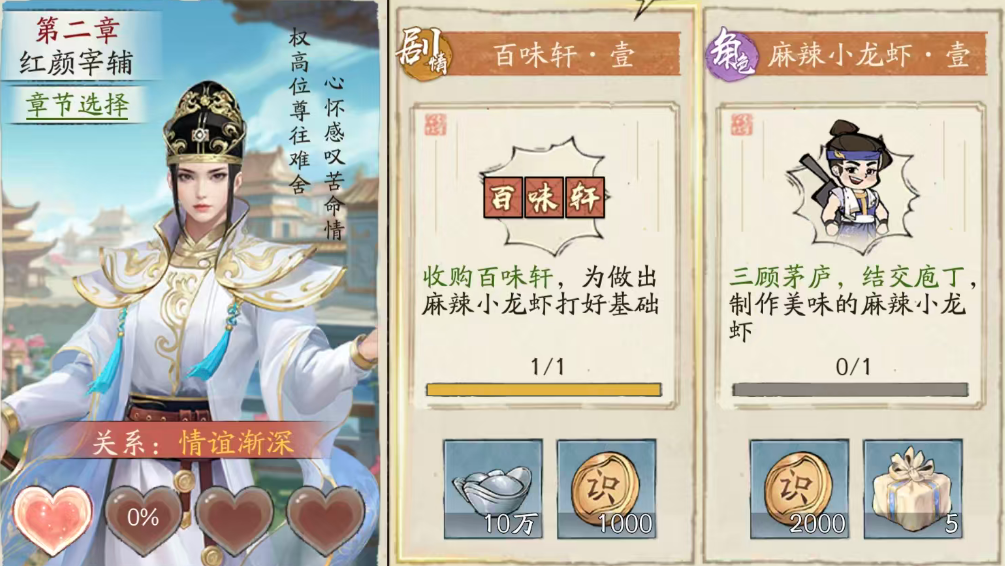 在《大店小2》这款模拟经营类手游中,玩家通过持续扩张店铺规模、优化商业布局来提升经营效率。游戏内设有独特的“红颜系统”,其中部分角色不仅拥有独立剧情线,还能为玩家提供实质性的经营增益。关于玩家普遍关注的“红颜宰辅”身份问题,答案明确指向第二章核心人物——上官云儿。
