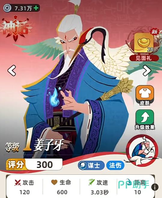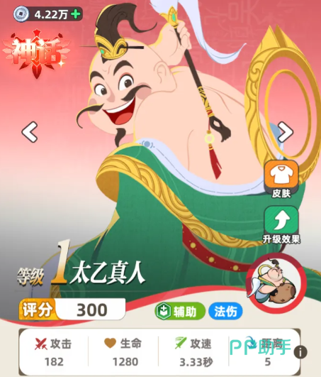 太乙真人属防御向辅助,技能优先治疗生命最低的队友,恢复量等于其100%攻击力;战斗开始时,自动为自身及身后一格范围内的友军施加护盾;携带护盾的单位在遭遇致命伤害时可豁免一次死亡;其天赋赋予所有带盾友军固定+80点攻击力加成。