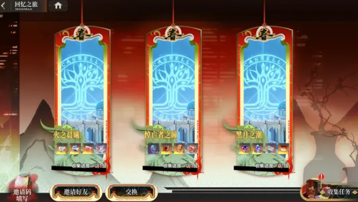 「回忆之旅」为社交激励型玩法。玩家可通过完成指定活跃任务,或成功邀请已离线的老玩家回归并达成复游条件,获得随机插画碎片。集齐指定数量插画后,可兑换包括限定招募券、UR招募券、剑灵之吻、超限觉醒石及限定名片「熙春嘉岁」在内的多项稀有道具。该机制兼顾召回效率与双向激励,对双方均设置明确奖励路径。