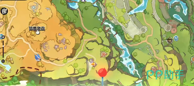玩家在打开游戏之后可以来到梦兽之森,在这边的右下角就能找到炼金台的位置。这其实就是获取的起始地段,在地图上马上就可以看到这一个位置的定位。玩家在抵达之后可以向后转身,然后朝着山的方向去前进。