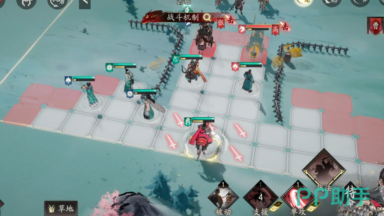 不同统帅路线会赋予主将独特技能与兵力加成。以曹操为例,选择统帅路线后将激活“魏武挥鞭”二阶效果,不仅能沿斜线方向对敌人造成打击,还可完全规避反击伤害。此外,释放该技能后还能为全队附加减伤护盾,大幅提高团队生存能力。