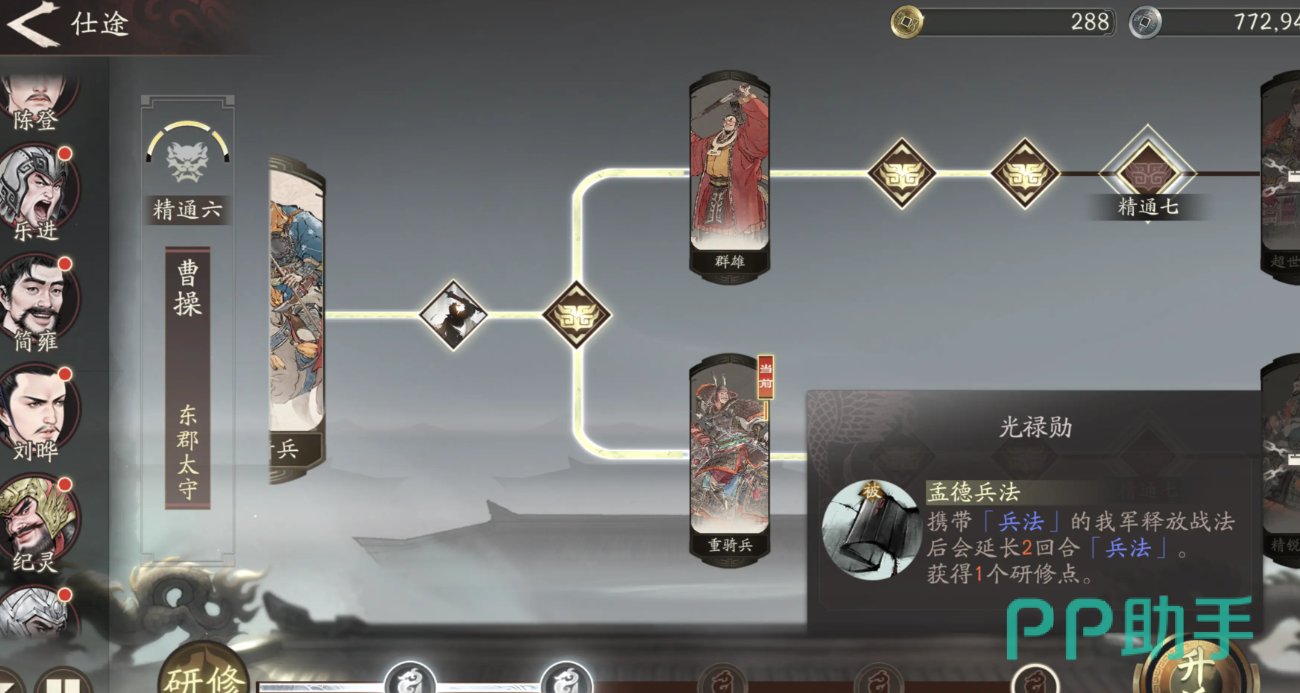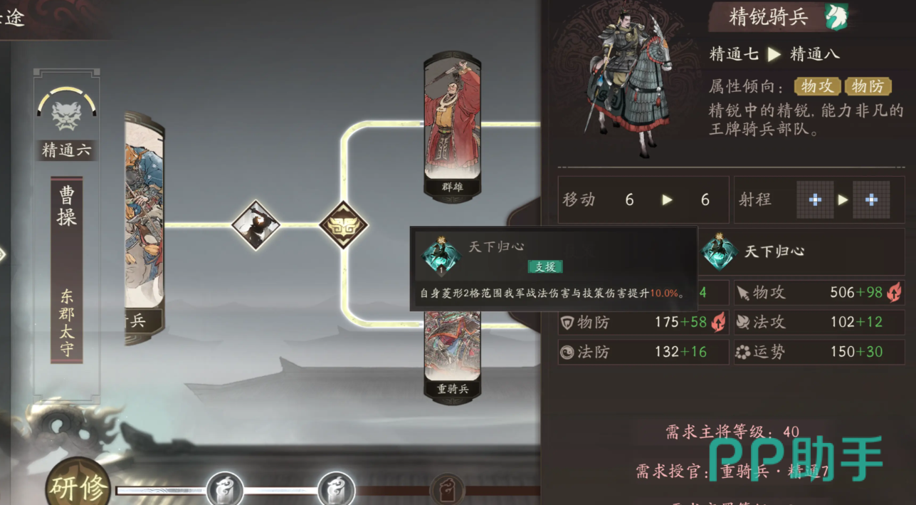 值得注意的是,并非所有附属路线都必须开启。对于某些专精型将领而言,只需激活核心路线即可发挥最大价值。例如曹操优先选择“雄帅”路线,于禁则专注战车路线,更能凸显其战术定位。