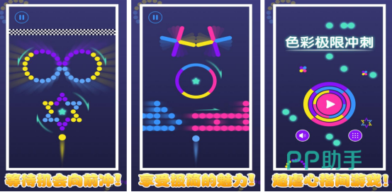 简单的操作方式,以及色彩缤纷的画面,会给玩家带来极强的视觉冲击感。主要的玩法就是需要通过隔着屏幕,点击其中的小球,通过不断点击的方式让小球撞到屏幕,之后就能释放出非常美丽的彩色光环。如果小球的颜色和呈现出来的颜色相同,那么此区域就会被消除,以此获得更多金币。