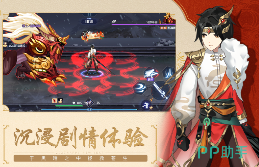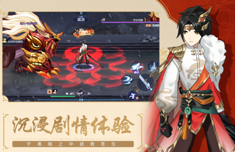 九黎这款国风背景的ACT闯关手游画风呈现华丽,将国潮彩绘风格跟山海经地图进行结合,浓郁国风背景衬托出的战斗意境更爽快,每关的关底BOSS都有山海异兽的造型,砍杀效果与技能展现都极为浮夸,自由排列技能按键组合的连击也尤为爽快,战斗的同时也会触发碎片剧情让整体故事更完美。