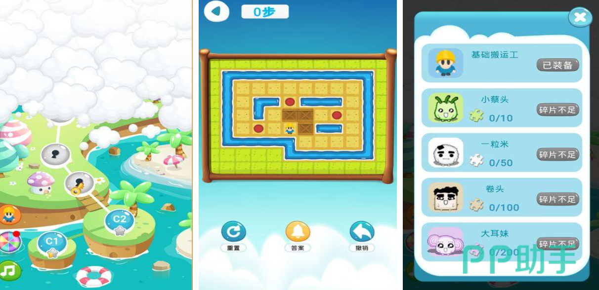 这款依靠智力和空间思维进行闯关的益智佳作,全新呈现的推箱子设定与关卡耐玩性不错,在愉快的配乐中完成推箱子任务很舒服,各种推箱子的角色可集齐碎片免费获取,提示功能、重置按键的加入也增添了容错率,每关带来的推箱子场景地形都有所差别,你也依靠自身的思维能力合理推箱子吧。