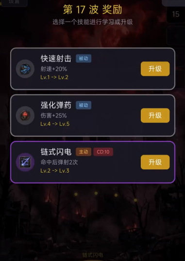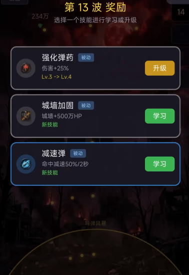 本作采用关卡制推进模式,每关划分为若干波次僵尸进攻,波次间自动刷新,僵尸种类与强度随关卡递进逐步提升。不同于开放世界设定,本作无野外探索环节,资源获取完全围绕战斗展开:击败僵尸可掉落武器、装备及宝石,宝石用于强化武器属性,显著提升单塔输出效率;通关后还将随机提供三类能力奖励供玩家自主选择,涵盖攻击强化、范围升级或特殊技能解锁,助力后续关卡战力持续成长。