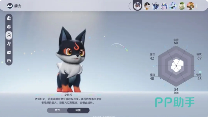 火属性功能性伊莫小炭犬,新生期即具备解谜适配性——其火系能力可激活地图中大量机关宝箱。远程使用时附带点燃效果,进化为焚火狼后不仅火焰强度提升,更获得移速加成,支持骑乘赶路;最终形态解锁“火拳”技能,单次伤害爆发突出,兼具探索与攻坚双重价值。