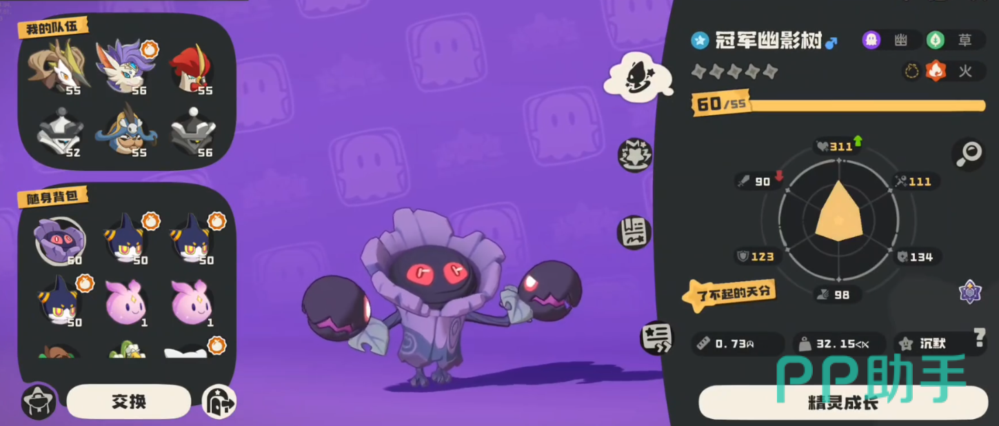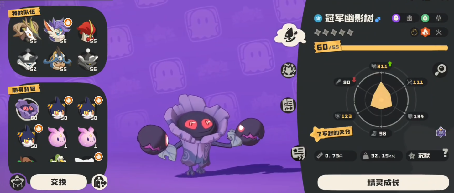 虽然冠军树在外形上与普通幽影树相同,但核心属性存在显著区别,主要体现在个体值和附加标识上。此版本幽影树默认具备顶级资质,所有基础数值均处于最优区间,完美复刻赛季冠军选手所使用的战斗配置,同时附带独一无二的认证徽章。
