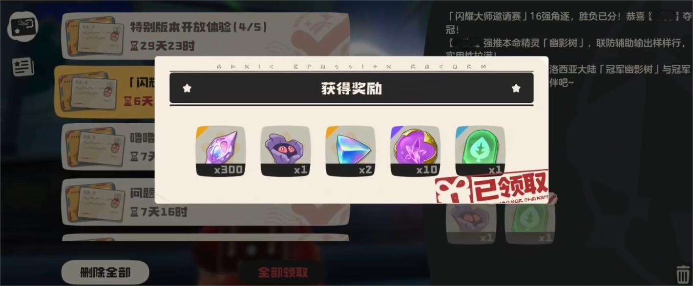 获取流程十分便捷,冠军树作为官方赛事回馈内容,可通过激活码形式发放。玩家只需进入游戏设置界面,打开对应的消息窗口,找到带有信封图标的选项,在输入框内键入口令“你好冠军树”,即可直接领取该精灵。本次发放的为幽影树形态,外观与常规版本保持一致,无视觉差异。