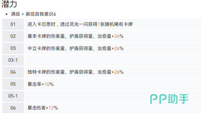生存方面,【逆流斩】能为自身提供相当于100%攻击力的护盾,显著增强战场存活率。【准备压制】则可定向抽取攻击类卡牌,并附加20%的伤害增益,有效优化出牌顺序,确保连贯输出。此外,特殊卡牌【偷袭】可对全体敌人造成180%的范围伤害,在恰当时机使用可扭转战局。潜力系统的设计也让角色成长路径更加明确,满级后可获得开局优势,并提升26%的治疗效果与护盾强度。