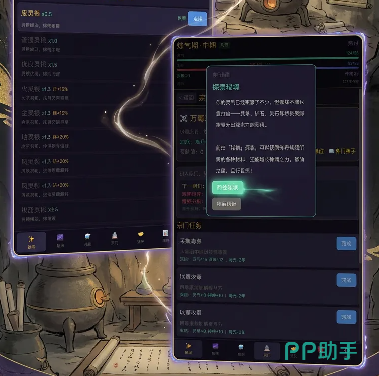 除主线剧情外,游戏内置多元玩法模块。日常可参与秘境探索获取稀有材料;等级达标后开放宗门系统,支持加入或创建宗门,解锁专属任务、宗门战及协作副本等内容,显著提升社交性与长期可玩性。