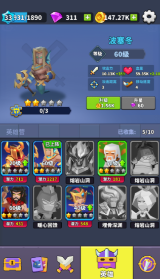 在游戏里玩家能选择的英雄非常多,每一个英雄基础的战力,血量,包括移动速度也都会有一定的区别,玩家需要根据实际的需求选择不同的英雄,带领士兵加入对抗,要提升这些英雄的基础能力,还可以通过消耗材料提升他们的星级,这样星级越高,英雄的战力也就越强。