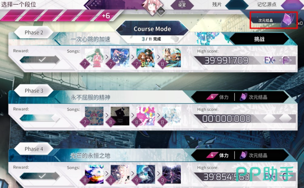 次元结晶:作为能够帮助玩家顺利开启段位挑战的一种道具,玩家只需要使用之后就能够开启挑战。而玩家在挑战时将会消耗4个点的体力值。其实对于玩家来说,一旦开启之后,它会影响到玩家在这个段位里面的成绩,但是整体的成绩并不会影响到最终的结果。如果玩家想要获得次元结晶的话,可以通过世界模式的指定关卡就能够获取。建议玩家在使用的时候,要根据自身的实力跟需求,并且要根据自身的段位来进行挑战,这样的话其实才能够让玩家的实力大幅度的上升。