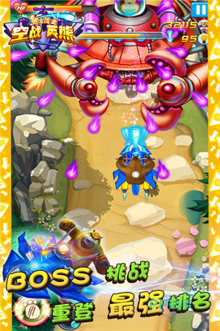 在进行非常激烈的空战的时候,这款游戏也是保留了经典的动画角色和场景,玩家可以去选择不同的玩法,比如说可以攻打大boss,也可以进行闯关。玩家如果能够顺利通关就可以获得钻石或者是金币,所以能够激发大家不停的前进。游戏采用的是卡通的画面,而且在对战的时候,还可以有激动人心的背景音乐呢。