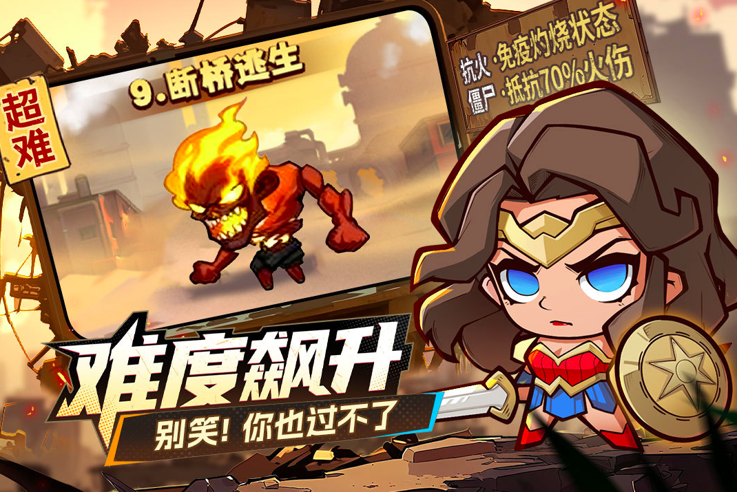 战斗节奏高度紧凑:每波僵尸潮来袭仅持续约60秒,单局总计迎战10至15波攻势;战场中随机激活大招词条,支持由单体伤害瞬时转为范围清场效果,强化临场爽感与操作反馈。