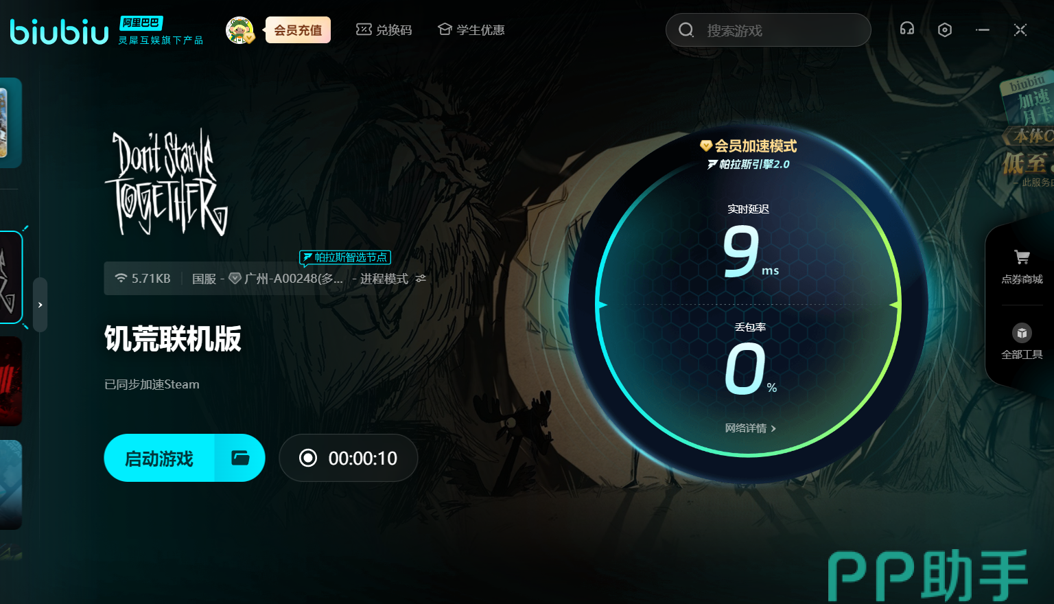 biubiu专为游戏打造,提供专门针对《饥荒联机版》的优化服务。在启动过程中,玩家还能自由更换节点,将延迟始终维持在较低水平。搭配全新的帕拉斯引擎2.0,它能够让网络全程保持稳定,为你营造打怪不卡、刷图流畅的环境。