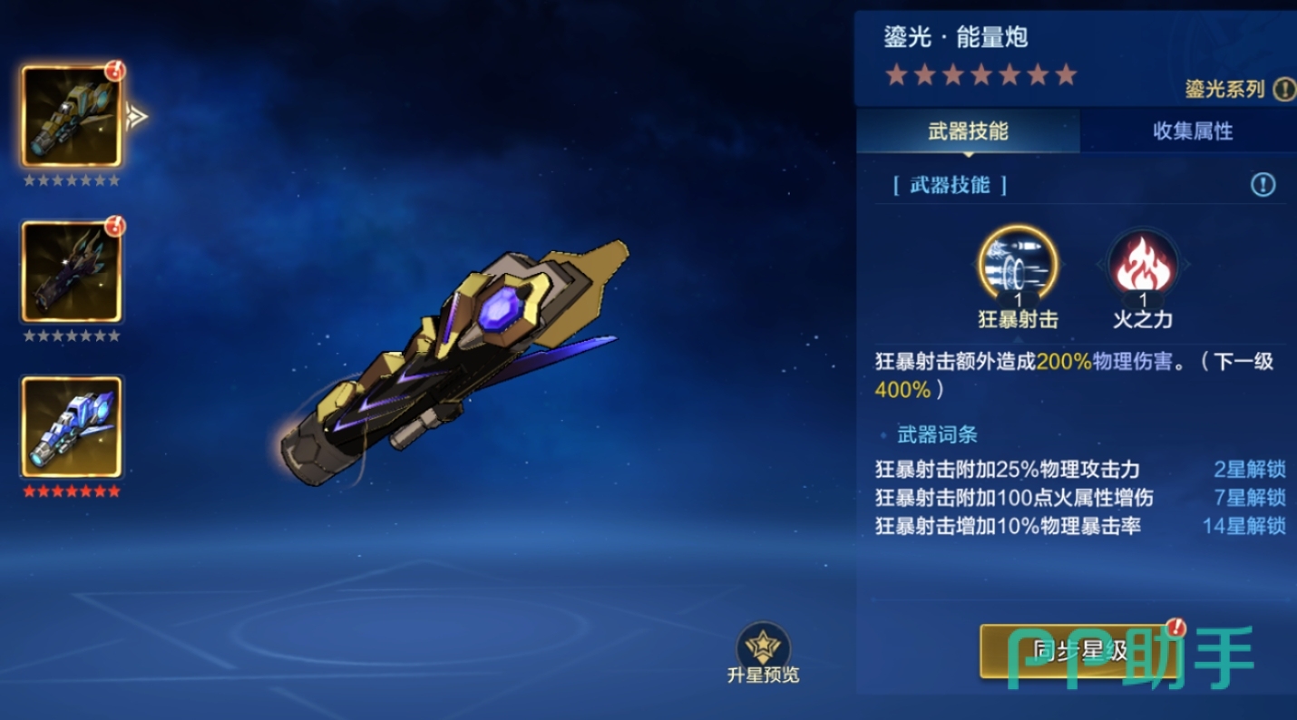 三把进阶专武各自关联一个核心主动技能,升星操作需消耗对应活动限定材料,可通过限时活动、周期副本及成就奖励等多渠道获取。每提升1星,除增强所绑定技能的基础参数外,还将解锁专属“星级能力”——该能力随星级提升逐步激活,例如增加暴击率转化、附加元素穿透、延长控制时间等实战向增益。星级越高,技能在高难度副本与PVP环境中的输出稳定性与爆发潜力越显著。