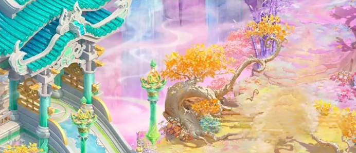 在场景设计上,落伽山遍布灵树,其果实具备强大的恢复效果,是后期游戏中重要的资源之一。此外,门派内设有仙气氤氲的莲花池,所产莲子具有修复生命的作用,是玩家在挑战高难度关卡时必备的补给品。配合宏伟的宝殿与错落有致的灵植水景,整体呈现出神圣肃穆的视觉氛围。
