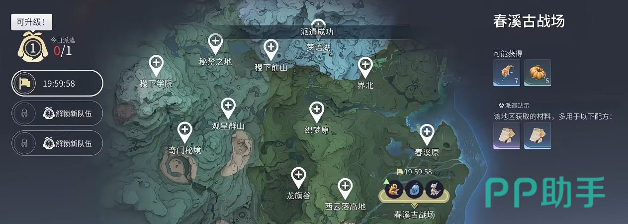 第三类关键机制是角色外派采集。家园升级所需建材种类繁多,包括青砖、玄铁锭、琉璃瓦、梧桐木等数十种资源。手动采集效率较低,因此系统内置智能派遣功能:玩家可指派一名或多名角色前往指定区域执行长期采集任务,任务期间自动累积资源,返回后即刻入库,大幅提升基建进度效率。