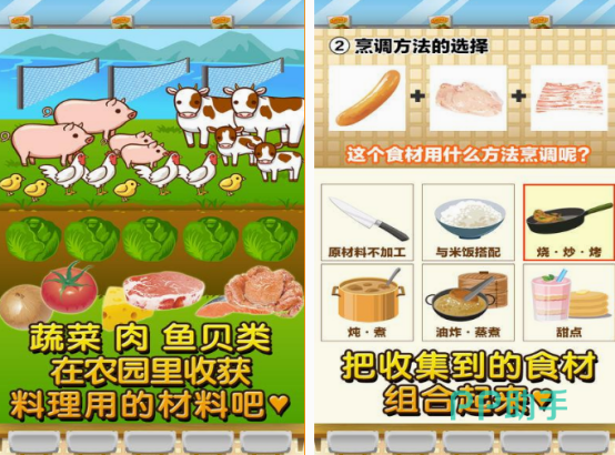 这款以经营日式家庭餐厅为主的游戏,里面涵盖很多的日式美食,无论是烤肉还是其他的美食,应有尽有,也属于玩法特别简单的。除了需要收获料理,所使用的材料,看到可爱的家禽甚至是各种蔬菜,在制作的过程中也可使用不同的烹调方法,正确选择以后组合在一起,制作出各种好吃的日式料理,通过非常简单的方式就能完成制作。