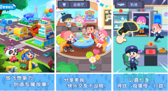 同样也由宝宝巴士所打造的热门游戏,宝宝可以自定义生活小镇,陆续推送出众多特色活动场景,比如大型医院、购物中心,目前包含的场景超过60多个小朋友可以随意点击不同的场所享受沉浸式体验。通过点击屏幕的方式,了解不同物品的名称以及具体的使用方式,还能够详细了解颜色,这样的特色游戏激发想象力也能够创造新的故事。