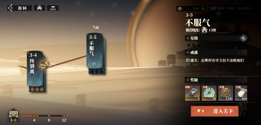 由于三山壁本身的消耗比较大,除了充值之外,大家参与的主线其实是此时获取三山壁的主要途径,在游戏的前中期阶段,主线关卡的难度相对来说是比较低的,这对于新手玩家来说是非常友好的,而且当玩家第一次完成关卡时,一定会有固定的资源可以获取,其中就包含大家想要的三山壁啦。