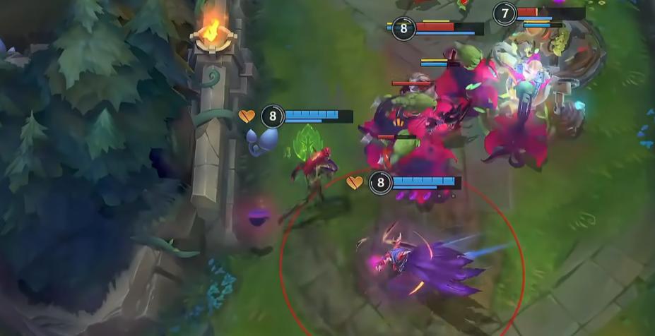 E技能“缠绕之根”射程微调,最大释放距离小幅缩减;命中目标后仍可禁锢并生成一朵新植物。R技能“绝望藤蔓”机制同步重构:取消原有范围魔法伤害+击飞+为范围内植物注入激素的复合效果,转而聚焦于精准植物调度——仅依据实际命中的敌方单位数量生成对应数量的荆棘喷射者,不再依赖预设区域内的植物存量。