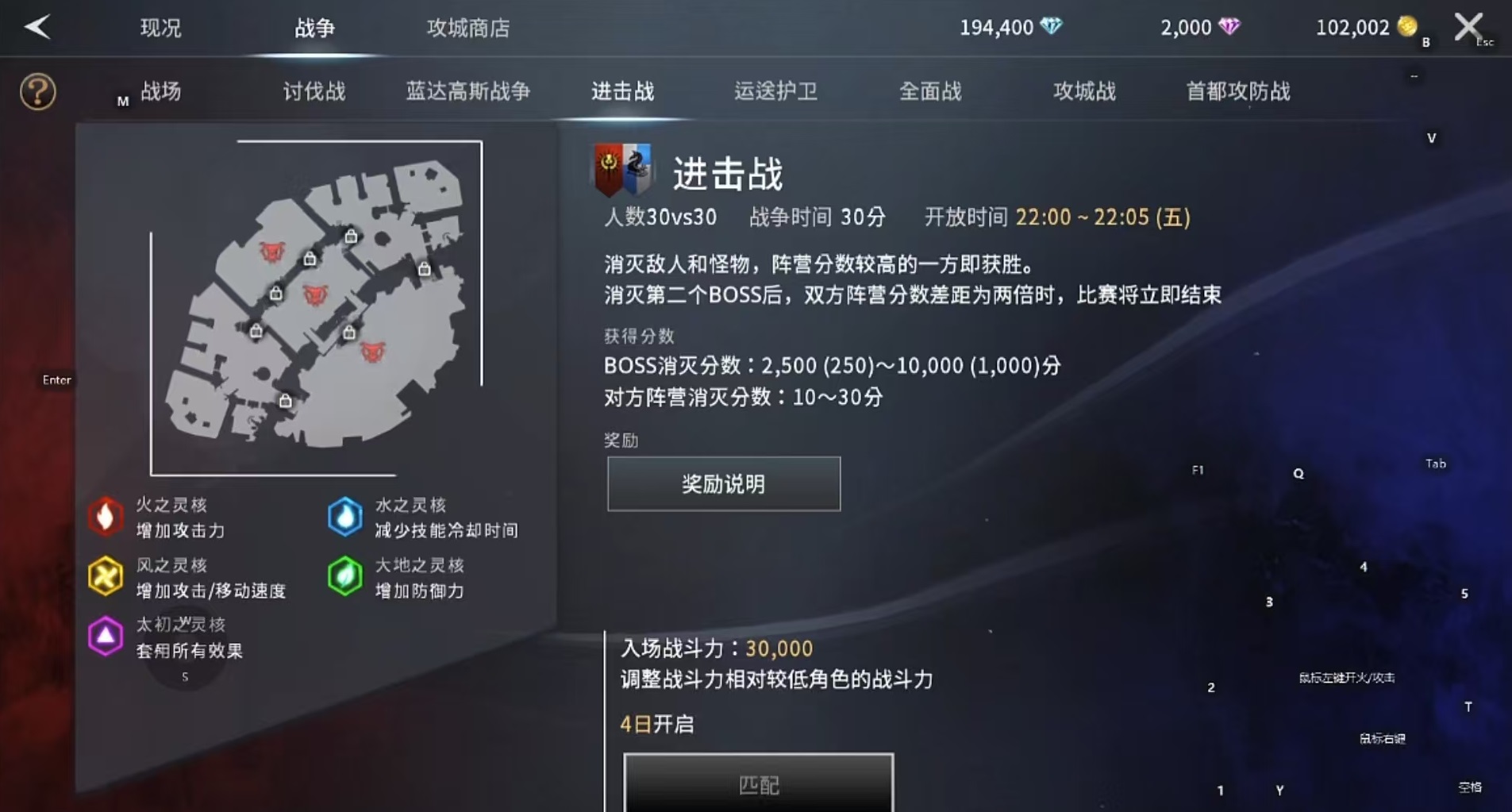 该活动于每周六上午10:00至10:05开启入场,持续时间为30分钟。比赛目标是通过击杀敌方单位和地图中的怪物来获取分数,最终以总分高低判定胜负。若在击败第二个BOSS后,某一阵营得分达到对手两倍及以上,则立即宣布胜利,无需等待时间结束。由于战场中设有多个动态增益点位,实时刷新各类状态加成效果,因此即使处于劣势的队伍也有机会借助地形与机制实现逆转翻盘。