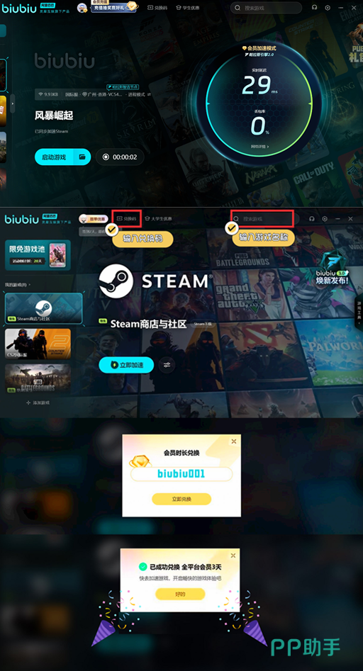 要想在游戏中一展身手,自然就需要注重网络的顺畅,否则可能会影响到个人的实践。这里就建议大家选择一款加速器,biubiu加速器现在还有免费加速时长,可以领取新用户在第1次注册之后有一个3小时的加速时长。在使用兑换码【biubiu001】之后,还可以额外的延长72小时。对于新用户而言,就可以享受长达75小时的免费加速时长。