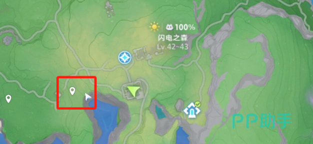 闪电之森位于游戏主世界地图最南端,毗邻海岸线,呈现为一片开阔的绿色平原地貌。玩家需达成42级方可通行进入。区域内首只可捕获宠物为走调草,刷新点集中于该区域北部边缘地带。其外形辨识度较高:整体呈圆柱状,通体青绿,顶部生有五枚扇形叶片,叶心绽放一朵淡紫色小花。虽与背景草色相近,但因花色突出且轮廓清晰,在反复巡游中较易发现。
