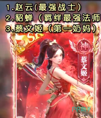 蔡文姬:属于一个辅助位的武将,拥有清除我方成员负面状态的能力,还拥有治疗的效果。迅速的提升整个队伍的治疗效果。