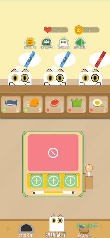 游戏里,你能通过独特配方融合出各式各样的美味猫零食,这些零食可不一般,是猫咪们的心头好。而制作这些猫零食所需的食材,都藏在神秘的食材菜单中,等待你去探索发现。当你用精心制作的零食投喂那些可爱的猫咪时,就能逐步收集图鉴。随着图鉴不断解锁,你将收获一只只灵动的猫咪伙伴。