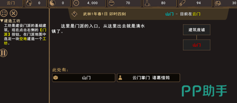 玩家进入到游戏中,点击前往清水镇,此时就可以看到在清水镇会有门派的入口,在这里就有掌门,玩家只需要和掌门对话就可以看到有武功的选择,在点击之后会在眼前跳出多个不同的选项。