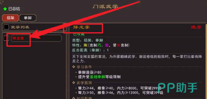 在武功的列表中,玩家所看到的就是多个不一样的学习方法,有不少的玩家都会关注,到底怎么样才能够学习降龙掌。其中就可以看到有降龙掌在点击之后就可以完成学习,很快就能够获取,这就是一个操作比较简单的方式。