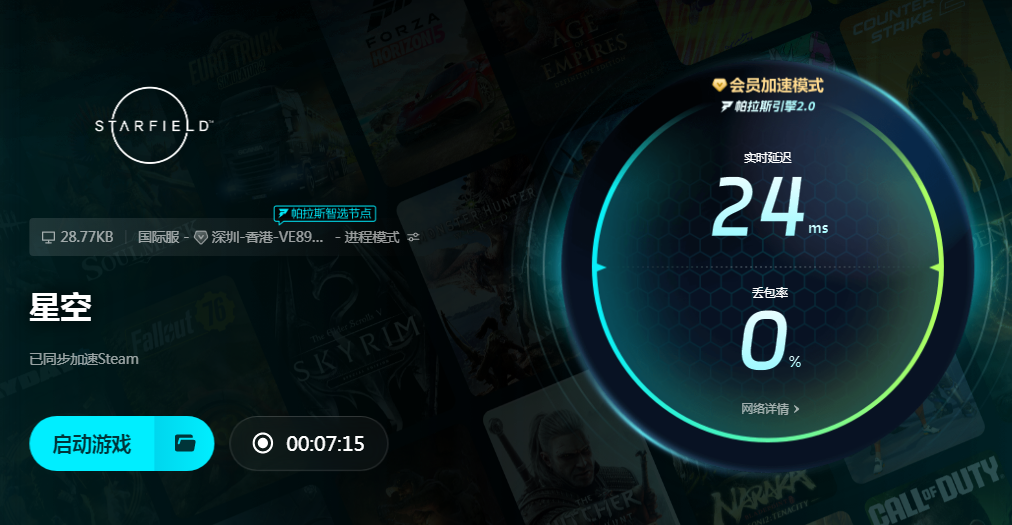 通过页面就能了解到加速效果了,页面上可以看清加速后的网速是多少,当前实时延迟是多少。大家在打团或者进行关键操作的时候可以先看一看当前网速,信号没有波动一直那么流畅,就可以放心玩下去,真的感受不到一丁点卡顿。
