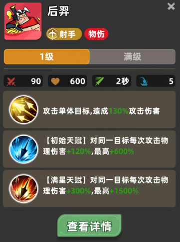 第二位:后羿。定位为射手流派绝对核心输出,零氪玩家可在达到黄金V段位后直接免费领取,无任何付费门槛。该角色动作流畅、技能衔接自然,在推图与PVP对战中均能维持高稳定性持续输出。其被动伤害叠加机制成熟,配合满星天赋后,对同一目标的最高百分比伤害可达1500%,远超同类型射手武将。在射手体系构建中,后羿不仅是主力C位,更是决定整套阵容上限的关键变量。