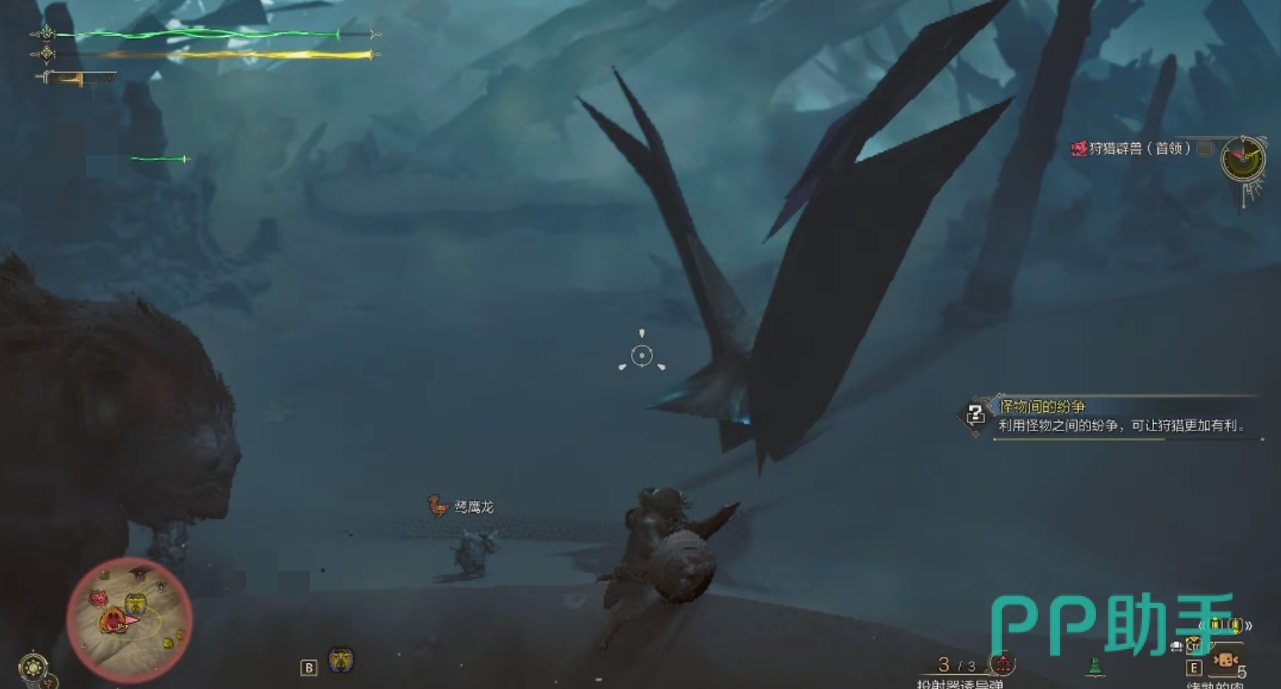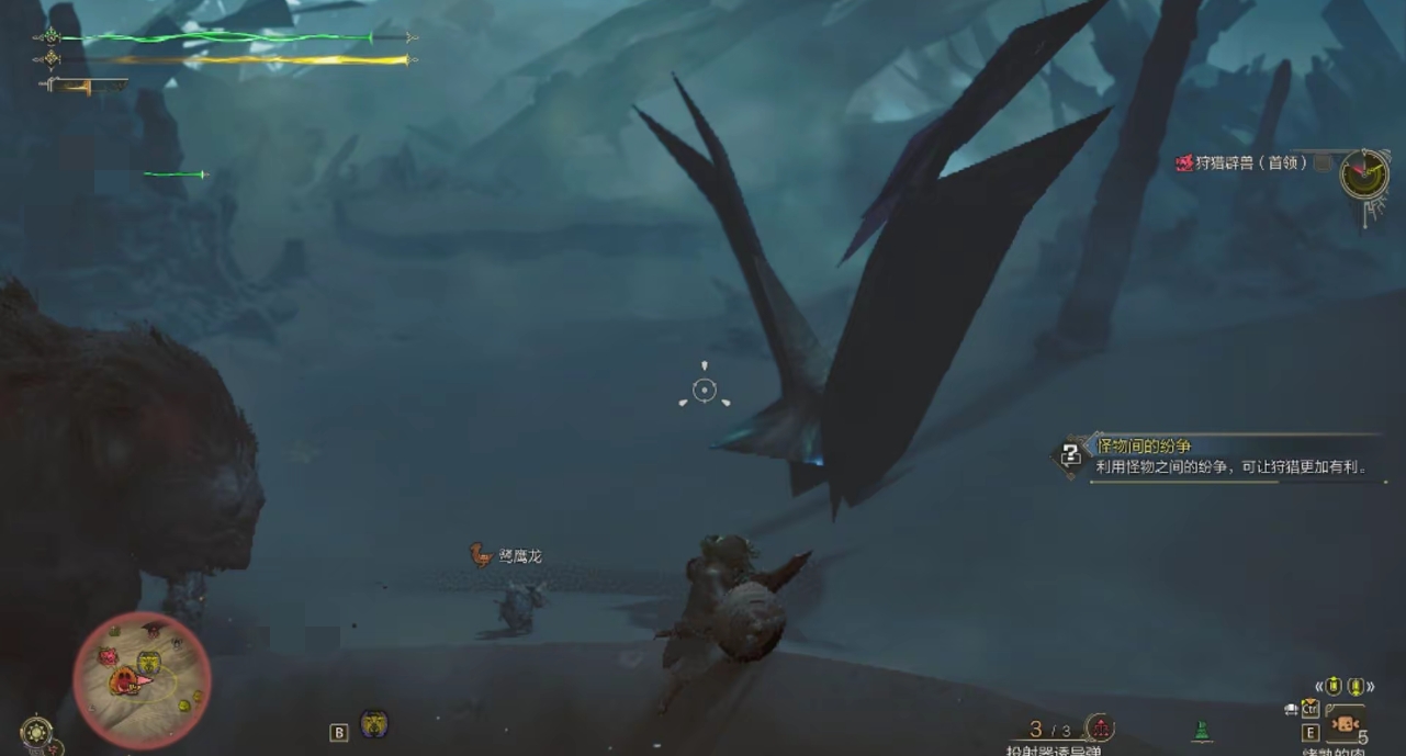 进阶一点的就是怪物使用其左右翼向对向方向滑动,前摇比较短,出招快,而且还附带击飞效果,但是伤害比较低;开局还会朝着玩家吼一下,一般怪物只要低下头并且拥有着极大的硬质就是要开始了,这对老玩家来说是一个极好的输出集火时机,注意可能会左右连续释放;折纸龙的左右翅膀还会插进地里,左右翅膀没有规律,插进去之后将会有五秒的僵直,这个时候也可以集火进攻。