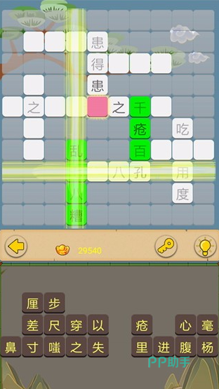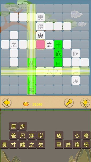 玩家需根据给定的单个字词线索,在空白处精准填入恰当的字,从而补全成语。只有当所有空白都被正确填写后,方能成功通关。当玩家点击成语方块,就能查看该成语的详细解释、出处等信息。此外,游戏还设有单词本功能,玩家可随时翻阅,了解已收集成语的解释、出处以及例句等内容。游戏涵盖了丰富多元的成语内容,有助于玩家广泛拓展成语知识储备。玩家只需依据空格旁的字词提示,准确填入单个字,即可组成完整成语。