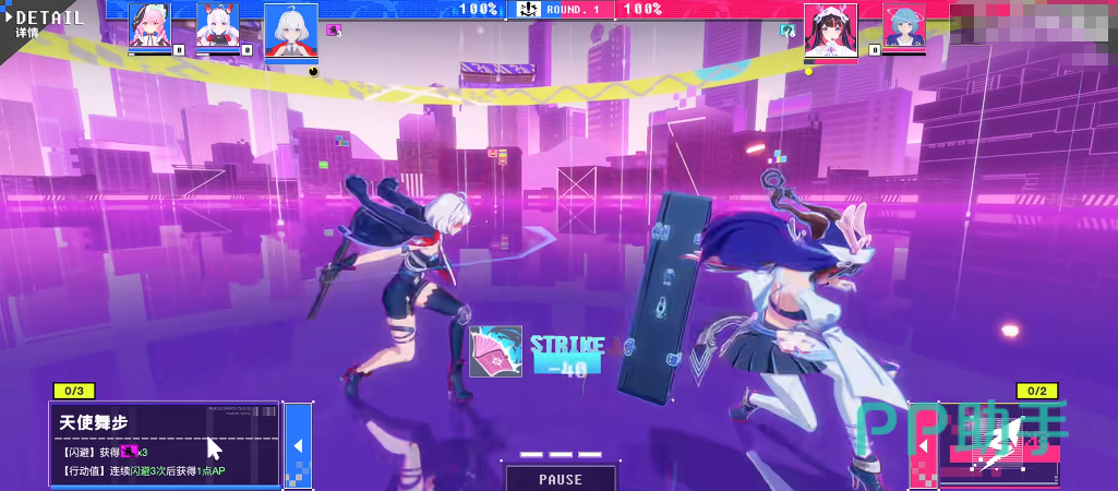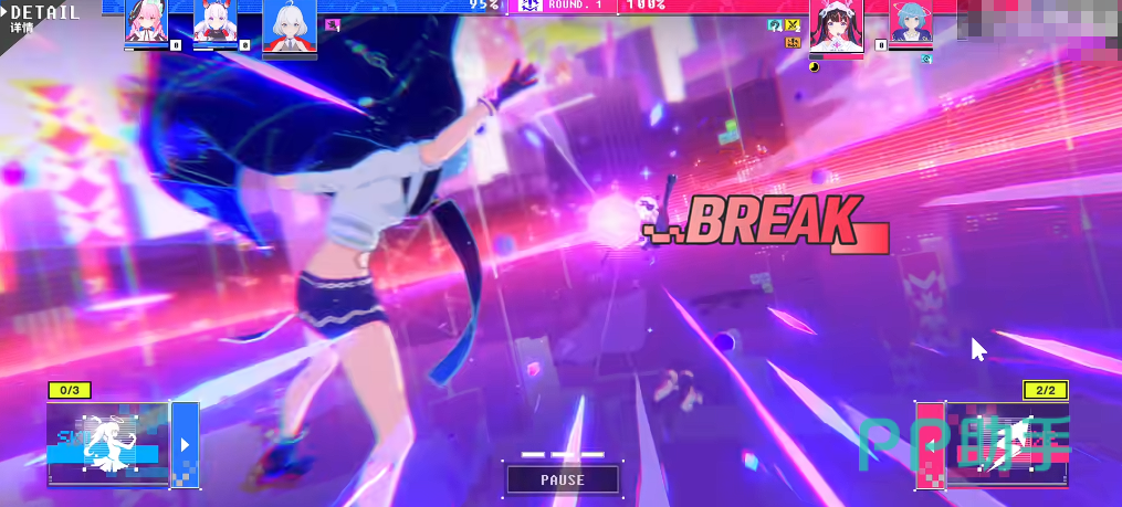 队伍配置方面,每方最多编入3名主力角色并配备1名替补。暂停功能仅限己方处于进攻方时使用。前期对峙阶段胜负关键在于爆点进度条的填充速度——此时“清引力”机制可触发概率性闪避反击,直接终结僵持并夺取先手;若成功格挡敌方攻击,还将依据减伤Buff等级获得反击机会,进而抢占出手序列。该设计大幅强化了防御决策的价值,使攻防转换更具策略纵深。