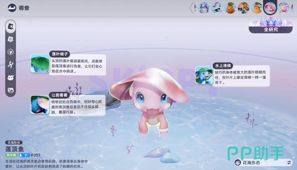 “莲顶鱼”则承担队伍核心治疗职能。其基础治疗技能可恢复目标35%最大生命值,并附带5秒内持续回血效果;进入2级形态后,除治疗量提升20%外,还将解锁水下高速移动特性——移动速度达陆地常态的2.3倍,且完全无视水流阻力,使玩家可无损穿越深水区、湍急河流及隐秘水下通道,直达传统路径无法抵达的关键区域。