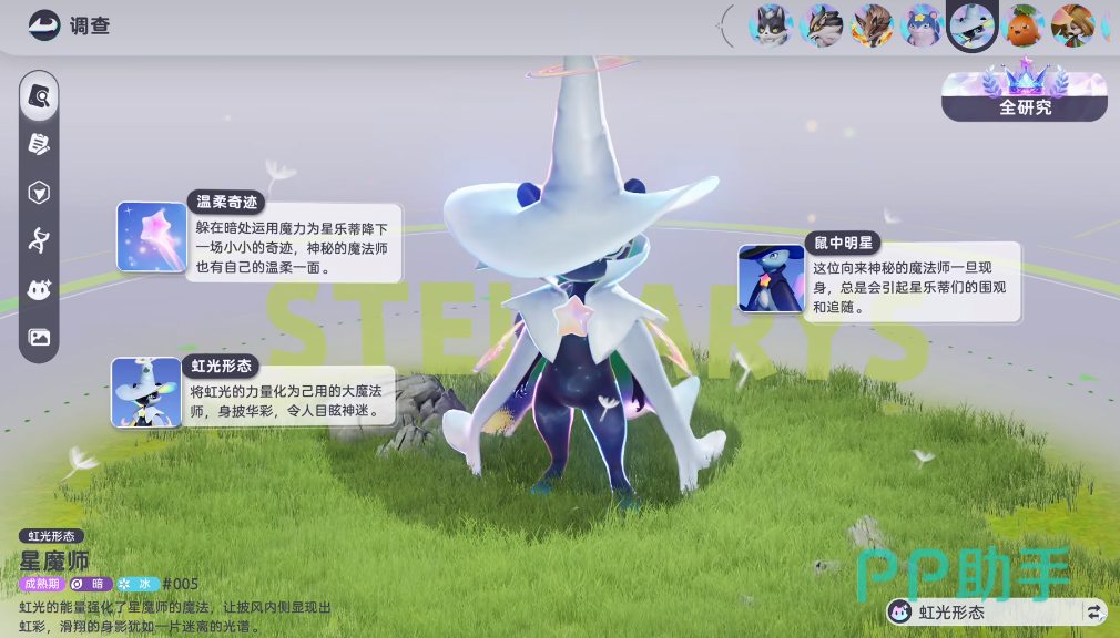 “星乐蒂”以双形态进化机制著称:初始为地面行动的啮齿类生物,升至特定等级后可蜕变为悬浮施法形态的暗属性法师。该形态下,其远程弹道技能射程提升40%,且对光属性目标造成1.5倍伤害加成。更关键的是,其专属飞行能力不受地形限制,支持从任意高点发起俯冲式位移,大幅压缩场景探索时间;在限时跑图类解谜关卡(如风蚀峡谷、倒悬钟楼)中,该能力为通关提供不可替代的机动优势。