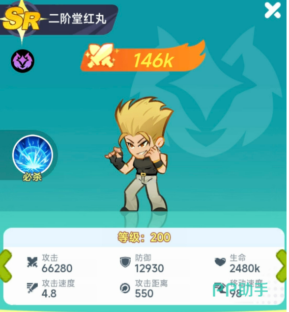 在格斗类手游生态中,二阶堂红丸凭借其均衡的机制设计与鲜明的角色辨识度,持续保持高人气。该角色源自经典格斗IP,在《最强斗王》手游中作为初始可获取角色登场,初始品质为SR。本文将系统解析其定位、技能逻辑、成长路径及阵容适配策略,帮助玩家建立清晰的培养认知。