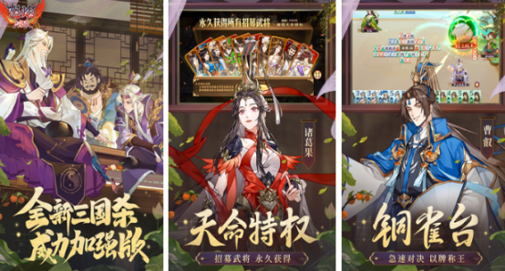 三国类游戏普遍加入真实的历史故事与历史战争,卡牌游戏有策略深度,卡牌游戏三国将将两种具有策略性极强的特色元素结合,玩家需合理搭配阵容,运用战术来取得胜利。很多游戏中都融入动态大地图与独特的赛季制,让游戏有极高的可玩性与策略性,接下来为小伙伴们推荐几款比较流行的三国卡牌游戏吧。