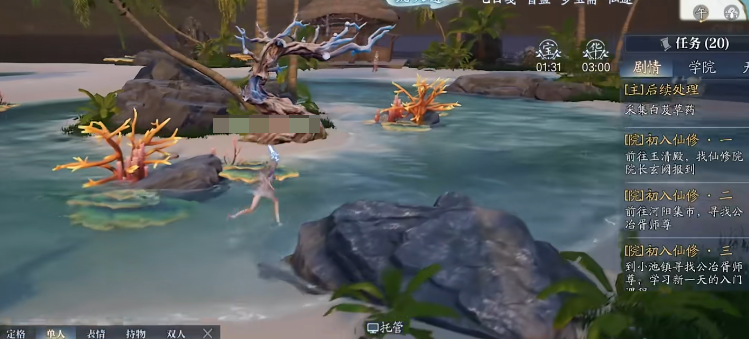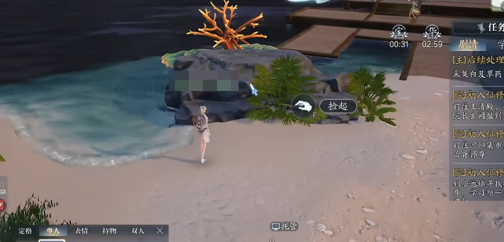 4.灵贝有珠:从上一位NPC位置向前步行一小段距离,坐标约为(23246,16802),拾取地面出现的珍珠即可完成。