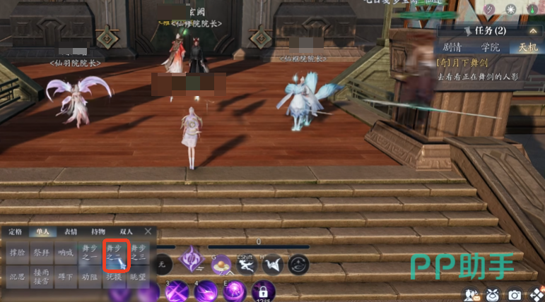 4.长袖善舞:位于玉清殿门前,坐标约为(16539,17403),面对玄阙大人使用“跳舞”动作中的“舞步之二”即可完成该奇遇。