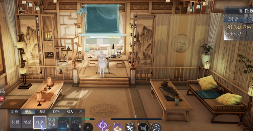 10.孜孜不倦:从上一个奇遇位置继续前行至走廊另一侧,终点靠大门处进入房间,直行至摆放山海画的桌前,使用“打坐”动作即可完成。